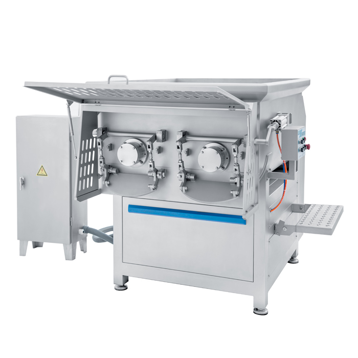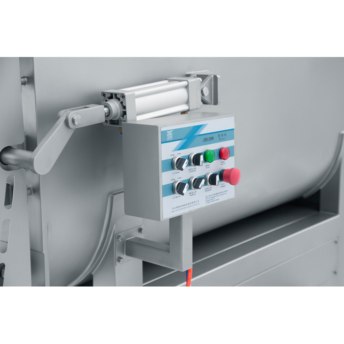JB1200食品攪拌機,是我公司參照國際同類產(chǎn)品的特點,同時結合我國肉制品加工工藝特點,自行研制開發(fā)生產(chǎn)的的新一代產(chǎn)品。是用于混料的必備設備,效率高,便于操作,真正實現(xiàn)了物料攪拌的均勻,膨脹充分,彈性好,色澤鮮艷并較大限度地提取蛋白質(zhì)多種功能,適合各種工藝要求,是制作風干腸類產(chǎn)品、粒狀、泥狀混合腸類產(chǎn)品、丸類產(chǎn)品的選用設備。