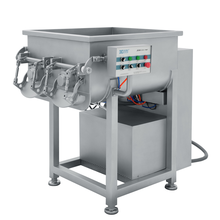 我公司生產(chǎn)的食品攪拌機(jī)是參照國(guó)際同類(lèi)產(chǎn)品的特點(diǎn),同時(shí)結(jié)合我國(guó)肉制品加工工藝特點(diǎn),自行研制開(kāi)發(fā)而成的新一代產(chǎn)品。是用于混料的必備設(shè)備,效率高,便于操作,真正實(shí)現(xiàn)了物料攪拌的均勻,膨脹充分,彈性好,色澤鮮艷并較大限度地提取蛋白質(zhì)多種功能,適合各種工藝要求,是制作風(fēng)干腸類(lèi)產(chǎn)品、粒狀、泥狀混合腸類(lèi)產(chǎn)品、丸類(lèi)產(chǎn)品的選用設(shè)備。