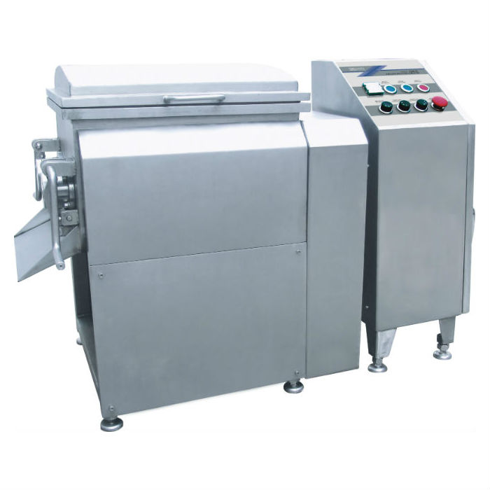 真空攪拌機是在原普通攪拌機的基礎(chǔ)上引進國際技術(shù)水平而改進的新型攪拌機。在真空的狀態(tài)下,物料被負(fù)壓后膨脹同時被槳葉進行徑向翻滾、軸向回流,完成混合均勻的攪拌功能,達(dá)到理想的攪拌效果,同時采用獨特的攪拌器,使拌出的肉餡纖維細(xì)化,并使肉纖維間的動物蛋白能游離析出,以保證肉餡拌和均勻并使之呈現(xiàn)蓬松狀態(tài),加入的調(diào)味汁液能充分吸收飽和,以保持餡料的松、鮮、嫩、口感味道優(yōu)異的特點。同時也是各類速凍水餃、包子、混沌等面食加工廠的理想設(shè)備。