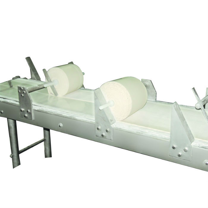 本機(jī)是用在對(duì)面粒進(jìn)行復(fù)合壓延,壓延后面皮可自動(dòng)卷在面軸上制成面卷,可直接用在日本和韓國(guó)餃子機(jī)上,也可用于鮮濕面的切絲前期處理。